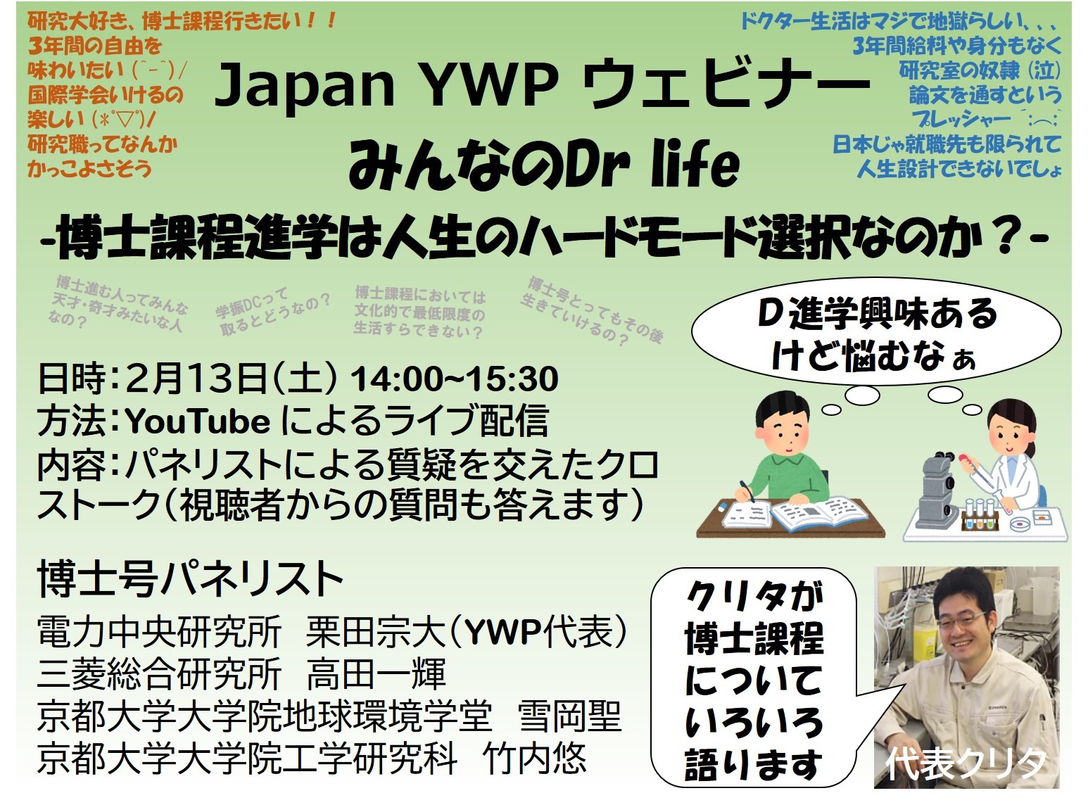 Japan-YWPウェビナー 「みんなのDr life -博士課程進学は人生のハードモード選択なのか?-」